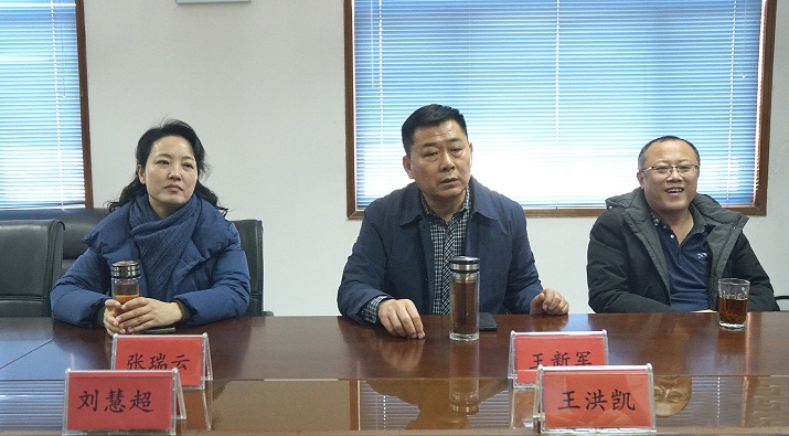 1月13日,濱城區委統戰部副部長、工商聯黨組書記、副主席王新軍,區工商聯黨組成員、二級主任科員付良臣,區工商聯黨組成員、副主席張瑞云一行到公司調研。